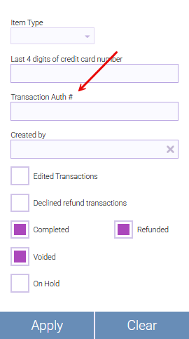 - In Meevo, open Transaction Editor and perform an Advanced Search using that same Transaction Auth # to find the original transaction.