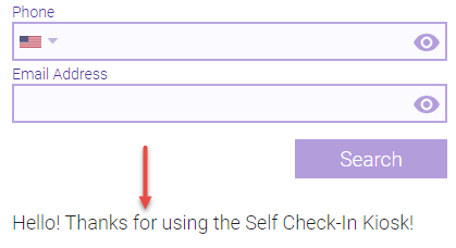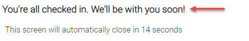 - Successful Check-In Message: When clients successfully check in, they are brought to another page that displays this message. This page stays up according to the duration that is set in Auto Dismiss Messages in __ seconds.