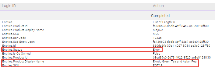 - Select the down arrow on the text search window to view each product with that state (error or abandoned). You will be able to discern the product display name, code, and other easily identifiable information about the product.