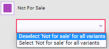 - Not For Sale: Select the checkbox and then define whether to select or deselect the Not For Sale option on all selected product variants.