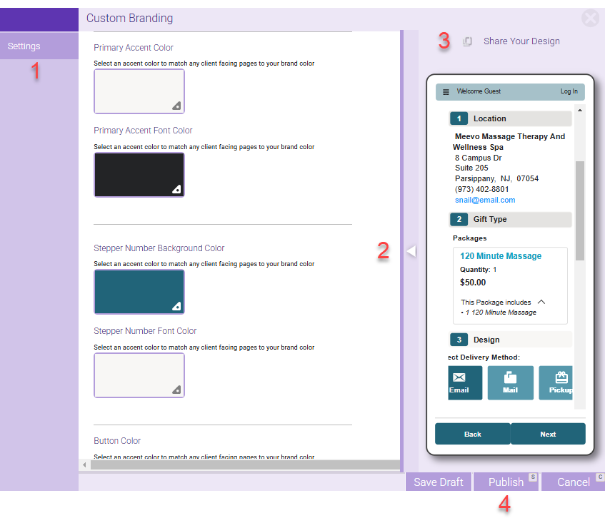 Note: This new version of Custom Branding is only available to businesses who are using the new eGift experience.