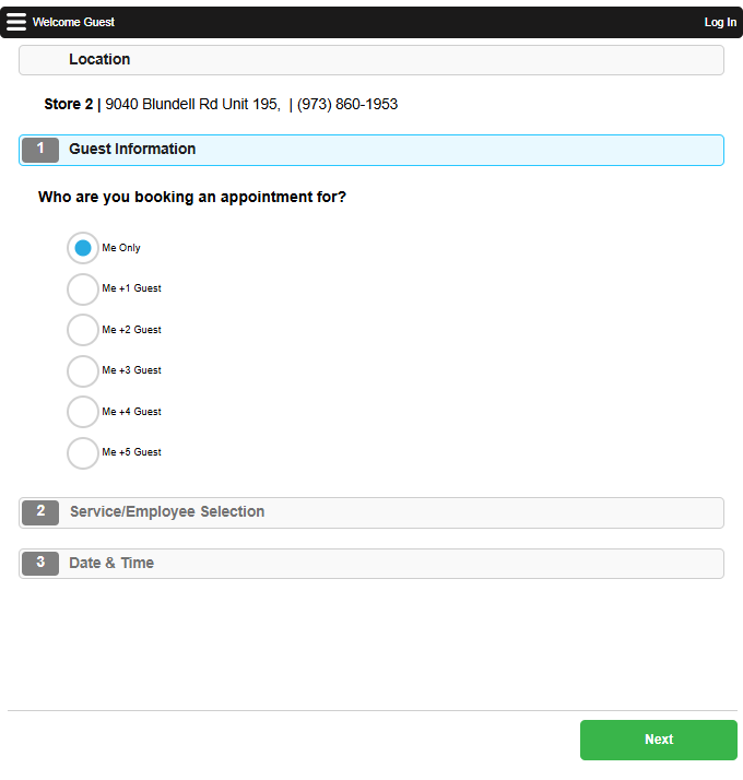 To avoid confusion about the workflow, we adjusted the numbered steps on a single location's Online Booking, eGift (new experience), and Online Membership Sales sites. Step 1 is no longer the Location Selection step, since this is not necessary for single locations. Clients now begin on the Guest Information step, and location information will be displayed without a step number for single locations.