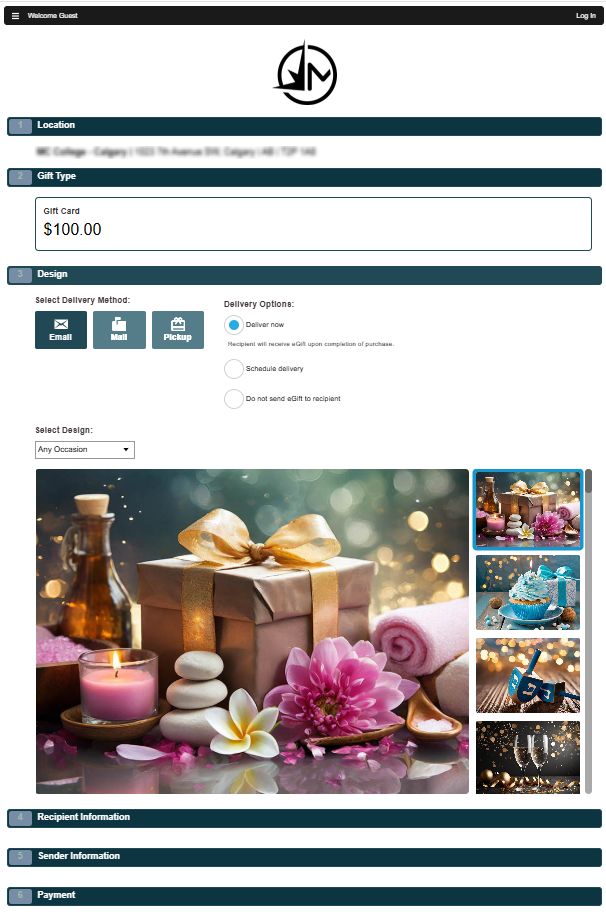 - The new eGift experience shares the same modern design and step-based workflow as our other client-facing sites (Online Booking and Online Membership Sales), providing a familiar experience for clients and making it easy for them to navigate and complete their purchases.
