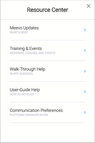 We’ve added a new feature that gives users more control over the messages they receive within Meevo. A new Communication Preferences option is now available in the Resource Center (accessible by clicking the ? in the top-right corner of Meevo).