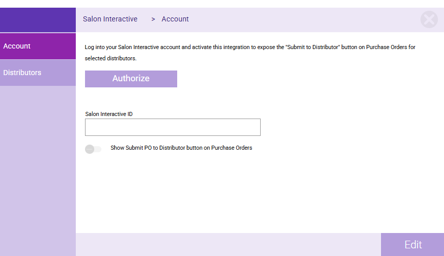 - From the Meevo > SalonInteractive > Account tab, select Edit.