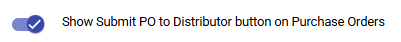 - Toggle the Show Submit PO to Distributor button on Purchase Orders to the "on" position.
